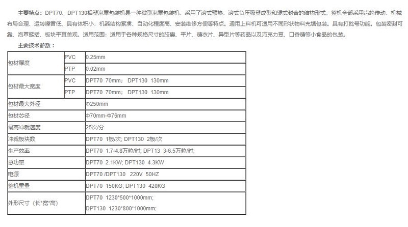 DPT70 、DPT130鋁塑泡罩包裝機(jī)